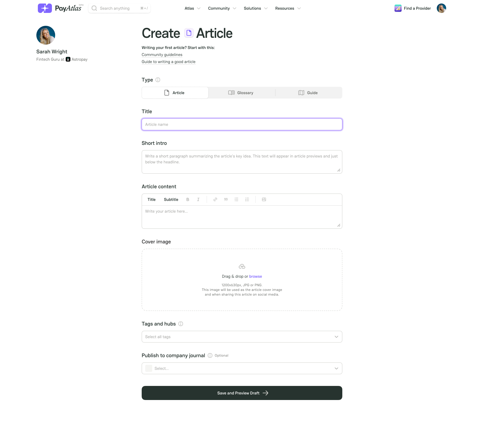 Creating your content can significantly help you not only in brand recognition but also in knowledge sharing and networking. Thus, learn how to craft and publish your content on PayAtlas.