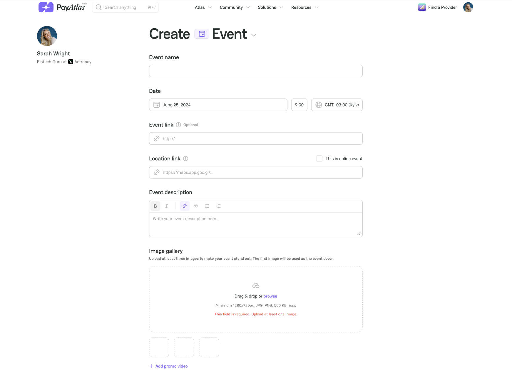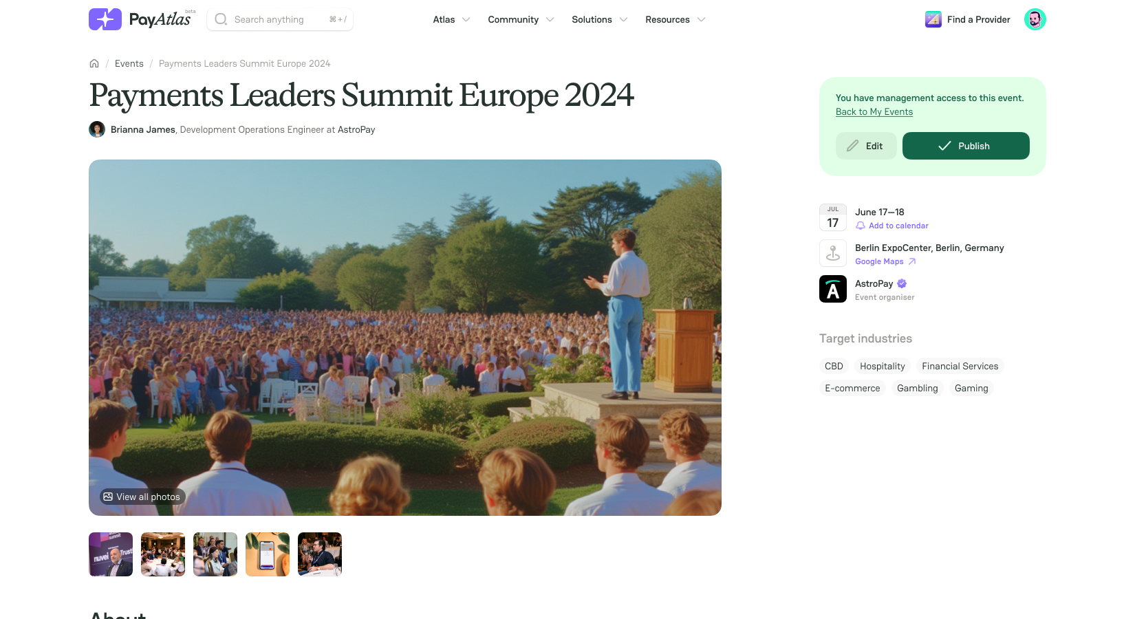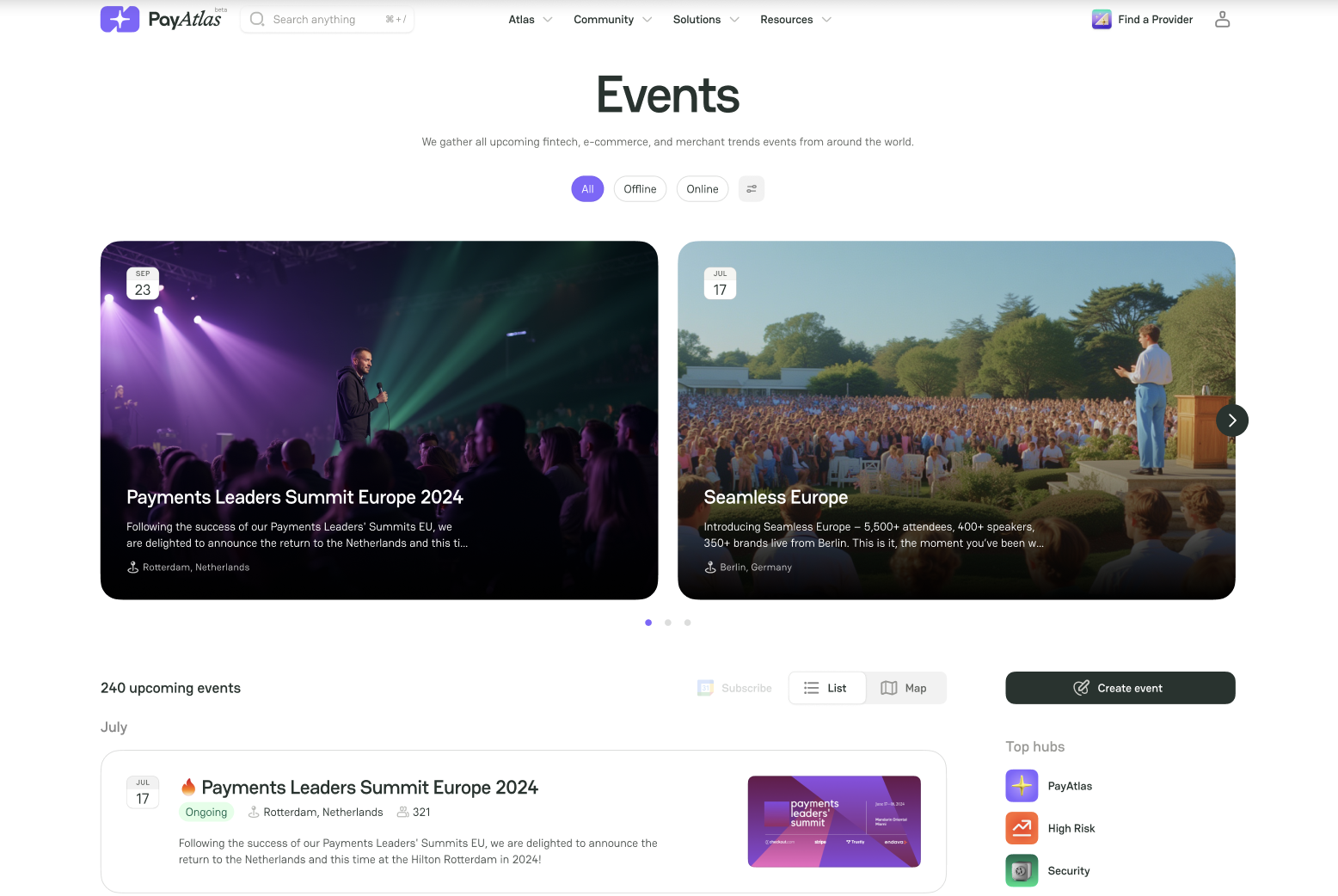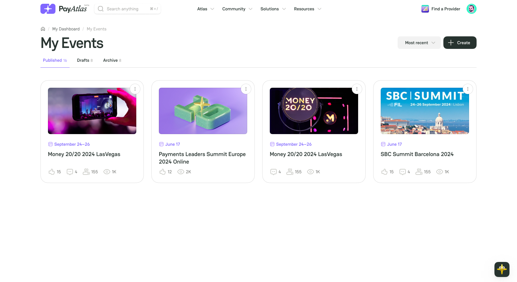 Creating a community starts with communication and gathering together. Learn how to create Events at PayAtlas and join the global networking community. Share ideas, boost knowledge and expand your professional circle with aligned people.