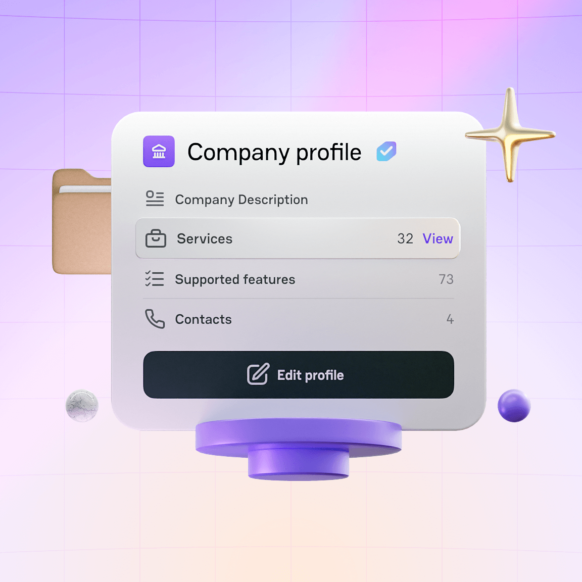 - “Verified” badge in catalogue and profile